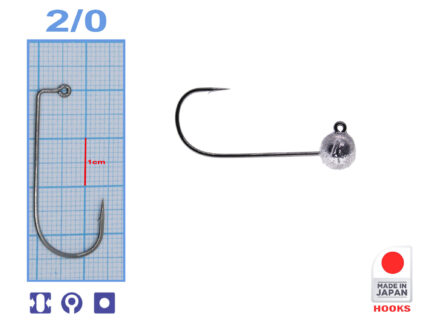 Clasicul model de carlig de jig (Aberdeen Jig) turnat pe microjiguri bila (jig fara guler) de 6gr (gramajul este inscriptionat pe bila). Aceste microjiguri sunt recomandate pentru armarea nalucilor soft mai subtiri, lipsa gulerului din plumb nedistrugand naluca dar pot fi folosite cu succes in combinatie cu orice tip de naluca soft. Marimea #2/0 este ideala pentru armarea nalucilor intre 6-7cm, in special pentru pescuitul bibanului, salaului sau a stiucii.