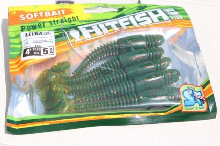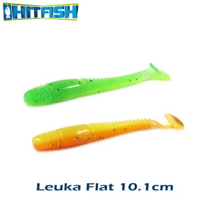 Hitfish LEUKA FLAT este o naluca ideala pentru orice tip apa (rau, lac, iaz) si orice specie de peste rapitor. Forma acesteia ne aminteste de un vierme, fiind, in aceleasi timp, un vibotrail cu o coada cu striatii, deci cu siguranta nu va fi refuzata de catre bibani, salai sau stiuca. Dupa cativa ani in care am pescuit aceasta naluca pe multe ape din Romania putem sa spunem ca este o naluca excelenta pentru pescuitul bibanilor capitali si a salailor. Varietatea mare de culori “va multumi” nu numai pestele, ci si pescarul! Recomandam ca nalucile sa fie tinute in plicul original pentru a-si pastra mirosul si gustul cat mai mult timp.Datorita procesului de fabricare a acestor naluci (prin turnarea a doua culori o data) exista posibilitatea ca produsul final sa difere de cel afisat in poza. De asemenea pot exista diferente de culoare intre nalucile din acelasi pachet (la modelele din doua culori)