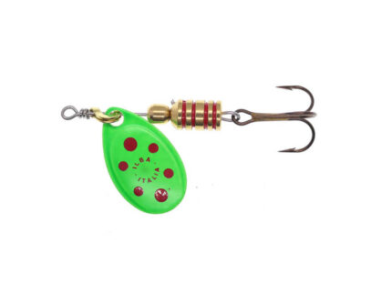 Culoarea Lime/Red este foarte vizibila si reprezinta prima tinta care atrage atentia pestilor rapitori aflati in apropiere. Tondo este cel mai clasic si mai verastil model de rotativa, cu un design atemporal si potrivit pentru diverse situatii si specii de pesti rapitori: clean, biban, pastrav, avat, stiuca, etc.Rotativa este fabricata in Italia si este armata cu o ancora VMC modelul 9649.