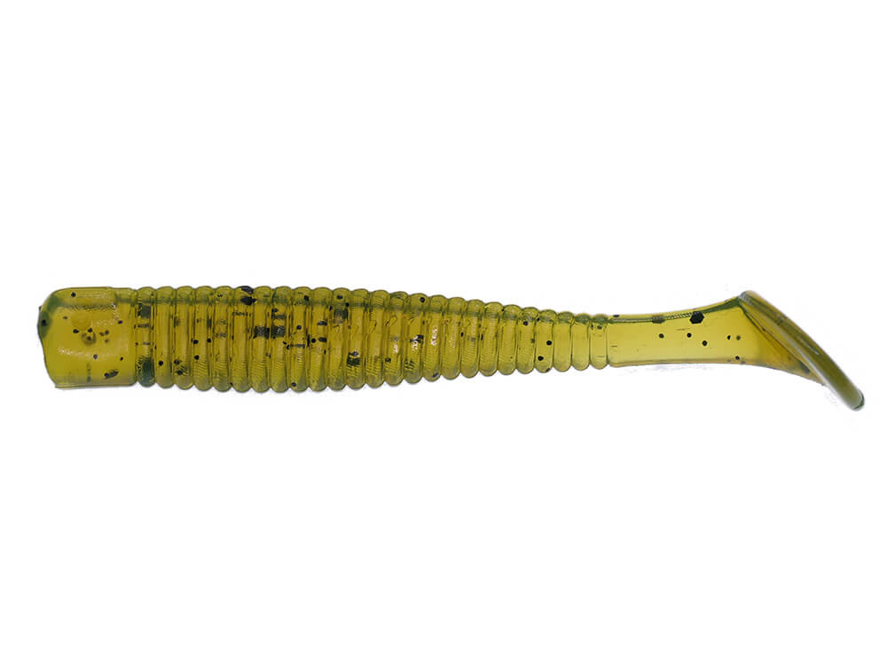 Modelul Skimpy se fabrica in doua marimi : 6.3CM (2.5”) si 8.9CM (3.5”). Aceasta naluca are un fel de corp flexibil si miscator si este ideala pentru capturarea bibanului. De asemenea, acest model se evidentiaza prin miscari active realistite datorita cozii mobile si suprafetei corpului plina de nervruri. Un atractant special cu un gust si miros natural, miscarile ractive si forma realista, consolideaza asemanarea cu un peste ratacit, usor de atacat. Gama larga de culori va va permite sa o alegeti pe cea potrivita : de la nunante de verde pana la culoare portocalie stralucitoare, care se va vedea bine in apa murdara.