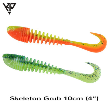 Skeleton Grub are un corp sub forma unul acordeon, ceea ce ii confera un efect de ondulare in apa si o coada subtire de grub. Corpul spiralat o face deosebit de flexibila si de aceea inteparea este foarte eficienta. Forma nalucii a fost proiectata astfel incat sa creeze cat mai mult zgomot in apa, provocand atacul pradatorului. Aceasta naluca se preteaza foarte bine in pescuitul cu carlige offset, consistenta materialului permite iesirea facila a varfului carligului in momentul muscaturii si implicit inteparea pestelui.