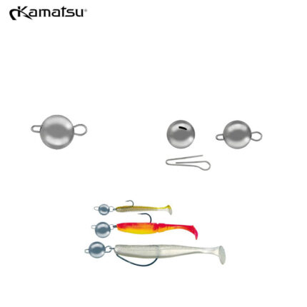 Montura in care se foloseste bila Cheburashka (sau Jig-Articulat cum o cunosc pescarii de spinning din Romania) a fost inventanta in Rusia, in ultima perioada fiind folosita tot mai des de pescarii din intreaga Europa. Bila Cheburashka Kamatsu are doua componente: bila propriu zisa de plumb (pe care este inscriptionat gramajul) si o sarma (agrafa) de care se ataseaza carligul. Aceasta agrafa se scoate / introduce foarte repede deci puteti schimba carligul usor in orice moment. Este important ca firul sa fie atasat de bila cu ajutorul unei agrafe (duolock / crosslock), nu recomandam atasarea firului direct de sarma bilei. Se pot folosi carlige de tip trailer (jig articulat) sau carlige offset care au de obicei ochetul mai mare. Acest tip de montura confera o mare libertate de miscare nalucii atat in plan vertical cat si orizontal mai ales atunci cand se folosesc naluci siliconice floating (In momentul caderii pe fundul apei naluca va ramane in pozitie verticala si nu va cadea pe o parte sau alta).