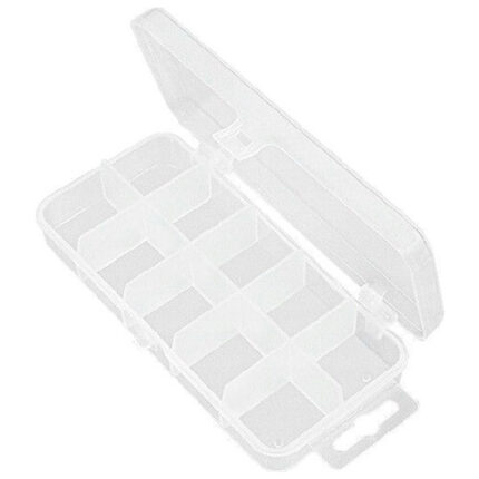 Cutie farbricata din material plastic transparent, cu zece compartimente ce permit stocarea carligelor sau a altor accesorii de pescuit. Acestea sunt usor de transportat datorita dimensiunilor reduse. Aceste cutii sunt recomandate pentru stocarea accesoriilor de pescuit: carlige, agrafe, varteje, plumbi mici, microjiguri, naluci.Pot fi depozitatein orice buzunar. Ideale pentru toate stilurile de pescuit datorita utilitatii, dar si a accesului facil si a modalitatii simple de transport. Se preteaza pentru pasionatii oricarei tehnici de pescuit. Beneficiaza de ureche de agatare pe cui.