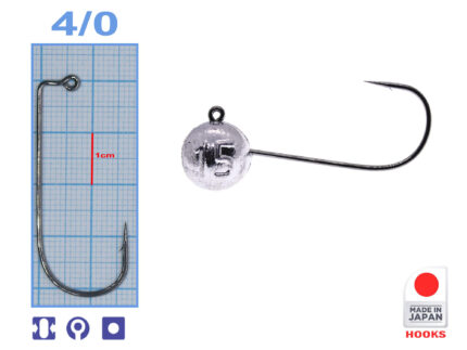 Clasicul model de carlig de jig (Aberdeen Jig) turnat pe microjiguri bila (jig fara guler) de 4gr (gramajul este inscriptionat pe bila). Aceste microjiguri sunt recomandate pentru armarea nalucilor soft mai subtiri, lipsa gulerului din plumb nedistrugand naluca dar pot fi folosite cu succes in combinatie cu orice tip de naluca soft. Marimea #5/0 este ideala pentru armarea nalucilor intre 8-10cm, in special pentru pescuitul salaului sau a stiucii.