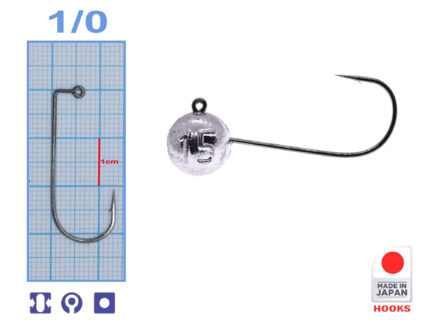 Clasicul model de carlig de jig (Aberdeen Jig) turnat pe microjiguri bila (jig fara guler) de 15gr (gramajul este inscriptionat pe bila). Aceste microjiguri sunt recomandate pentru armarea nalucilor soft mai subtiri, lipsa gulerului din plumb nedistrugand naluca dar pot fi folosite cu succes in combinatie cu orice tip de naluca soft. Marimea #2/0 este ideala pentru armarea nalucilor intre 6-7cm, in special pentru pescuitul bibanului, salaului sau a stiucii.