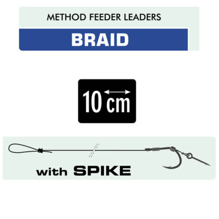 Forfacuri prelegate cu fir textil 10cm si spin (Spike) realizate pe carlige Kamatsu Iseama, ideale pentru monturile method feeder. Tot ceea ce trebuie sa faceti este sa fixati momeala de carlig (wafters, pop-ups, dumbells) prin simpla intepare. Practic, aceste forface va scutesc de corvoada legarii firului de par pe carlige mici si va ajuta sa petreceti pescuind, un timp indelungat pentru pescuit pe malul apei. Capatul forfacului este o bucla pe care o fixam rapid in conectorul de la baza momitorului method. Materialele folosite in aceasta montura sunt fabricate in Korea.