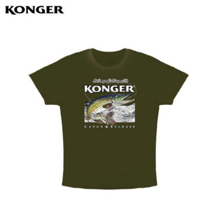 Konger tricou maneca scurta ce are imprimat pe partea din fata diverse specii de pesti in culori naturale : biban, salau, stiuca sau crap.Ideal pentru sezonul cald, poate fi purtat in partidele de pescuit sau in timpul liber. Text imprimat : Let's go fishing with KONGER si Catch & Release.