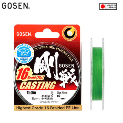 In plus, ceea ce este unic pentru brandul Gosen, care are propria fabrica, este selectia de fire brute pentru fiecare model. Jigging-ul variaza de la jiguri usoare la unele foarte grele, in functie de apa in care pescuiti, lac sau rau. Desigur, linia PE folosita este si ea diferita, dar puterea noastra este ca anticipam asta si ne adaptam cu firul brut si metoda optima de impletire pentru fiecare dimenisune. Procesarea unica a rasinii si acoperirea cu silicon de la Gosen reduc decolorarea. De asemenea, vizibilitatea initiala ridicata este pastrata pentru o lunga perioada de timp. Prin cresterea performantei rezistentei la frecare cu stratul de acoperire, ruperea firului este suprimata. Aluneca bine si se ghideaza cu usurinta, deci este un avantaj atunci cand incercati sa pescuiti cu naluci diferite, fie ca e vorba de spinning sau baitcasting.