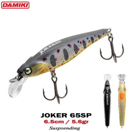Voblerul Damiki Joker 65 este un jerkbait de dimensiuni mici, dar robust, proiectat pentru pescuitul de tip Light (usor) sau Medium Light. Cu o evolutie de suprafata, de pana la 1 metru adancime, acesta este ideal pentru a explora straturile superioare ale apei.