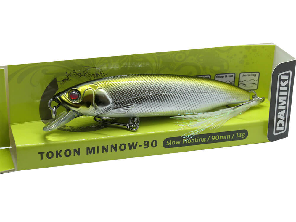 Damiki Tokon Minnow este un vobler jerkbait care trecut prin diferite teste de pescuit in Japonia. Are un corp subtire, dar dolofan, care atrage pestii tinta : avat, salau, stiuca si somn. Dimensiunea de 9cm este dimensiunea de baza a unui peste momeala, care este principalul peste tinta pentru rapitorii din tara noastra. Partile laterale ii confera o senzatie puternica de a atrage pestele rapitor, mentinand in acelasi timp echilibrul stabil al voblerului. In plus, ancora din spate ce este dotata cu pene mareste rata de succes a atacurilor deoarece ii confera o vizilibilitate mai mare dar si in acelasi timp si vibratii.