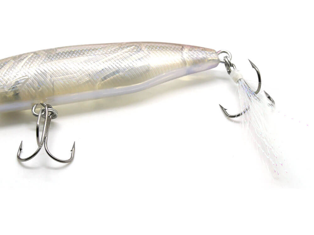 Tokon Minnow 90 is the best Jerk Minnow, proven by field tests in Japan. The body is the basic size of a baitfish, which is the main target fish, and the sides give it a thick feeling to strongly appeal to the target fish while maintaining a stable sense of balance.The three-dimensional eyes are specially designed to have strong reflective power, and the effect is further enhanced in the water. In addition, the feather hook used in the tail part increases the hook set success rate by accurately capturing the attack point of the target fish with excellent visibility and shaking caused by the waves.