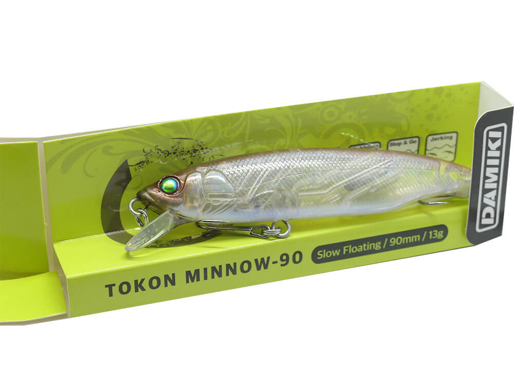 Damiki Tokon Minnow este un vobler jerkbait care trecut prin diferite teste de pescuit in Japonia.  Are un corp subtire, dar dolofan, care atrage pestii tinta : avat, salau, stiuca si somn.  Dimensiunea de 9cm este dimensiunea de baza a unui peste momeala, care este principalul peste tinta pentru rapitorii din tara noastra. Partile laterale ii confera o senzatie puternica de a atrage pestele rapitor, mentinand in acelasi timp echilibrul stabil al voblerului.  In plus, ancora din spate ce este dotata cu pene mareste rata de succes a atacurilor deoarece ii confera o vizilibilitate mai mare dar si in acelasi timp si vibratii.