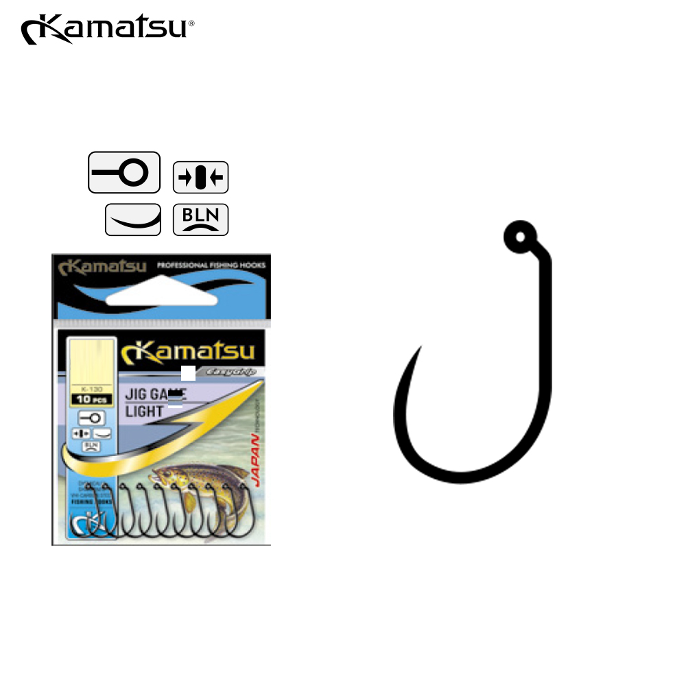 Kamatsu Jig Game Light Hook este un carlig debarbetat (barbless) excelent pentru pescuitul cu jiguri usoare si momeli din silicon, precum imitatii de insecte si larve. Fabricat din materiale de inalta calitate, acest carlig ofera performanta excelenta si durabilitate. Pot fi armate cu greutatile Kamatsu Bile Tungsten Slotted Beads. Recomandate in pescuitul pastravului sau cleanului mai ales pescarilor care practica pescuitul Catch & Release. Aceste carlige sunt fabricate in Coreea de Sud.