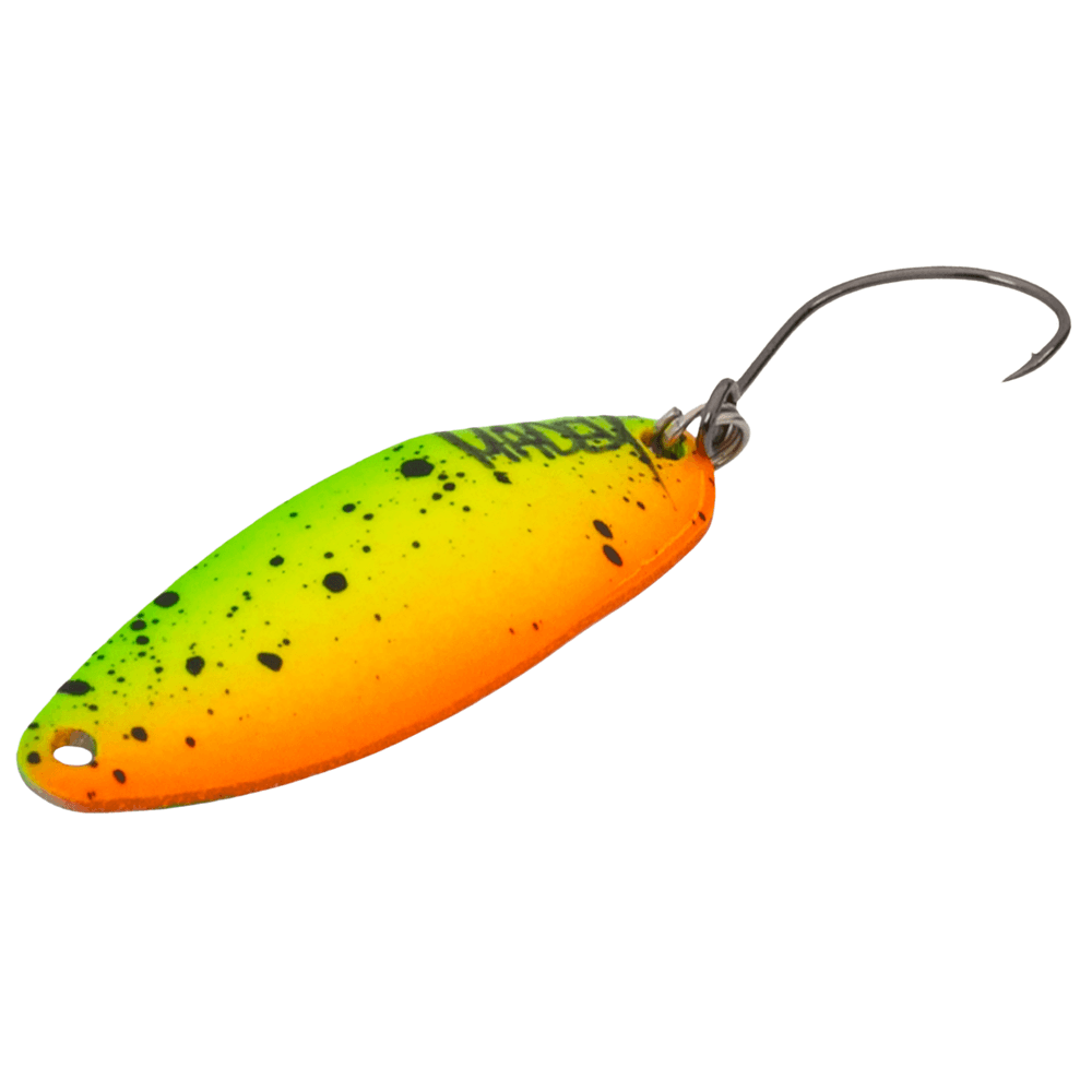 Modelul de lingura oscilanta Alpinka a fost un succes in randul pescarilor polonezi care au testat-o in 2020-2021, fiind de multe ori prima lor alegere atunci cand mergeau la pescuit. In acelasi tip, a aratat ca o oscilanta poate fi o momeala alternatica excelenta la nalucile soft atunci cand pescuiesti dupa biban, clean si pastrav. Si-a demonstrat valoarea in primul rand in apele curgatoare, unde, datorita structurii sale caracteristice, poate sta usor in curent. De asemenea, va functiona bine la pescuitul cleanului. Alpinka Madey se caracterizeaza printr-o constructie zvelta si ascendenta, care ii confera o actiune foarte asemanatoare cu cea a unui peste mic care se lupta in curent. Lungimea de 3,5 cm reflecta perfect dimensiunea pestisorilor naturali din iulie si august, care sunt usor dezvoltati si, prin urmare, atacati cu placere de pradatori. Functionarea linguritei Alpinka este usor tremuratoare si, cand este ghidata corespunzator, lingurita incepe sa sara lateral pe o raza de 5 cm. Poti folosi aceasta lingurita pentru a pescui in orice loc doresti, dar cele mai bune rezultate se obtin ghidand-o constant in curent, tinand-o aproape de locurile potentiale ale pradatorilor si adaugand o mica smucitura cu varful lansetei. Acest lucru este menit sa introduca miscari suplimentare de saritura laterala in momeala, imitand miscarile unui peste mic care incearca sa gaseasca un loc mai linistit in rau. Datorita naturii lor lucrate manual, modelele individuale de momeli lucrate manual pot diferi usor intre ele, ceea ce nu afecteaza negativ performanta si capacitatea lor de captura. Fiecare oscilanta este echipata cu un carlig cu contra de la renumita companie BKK. Produsul este 100% fabricat in Polonia.