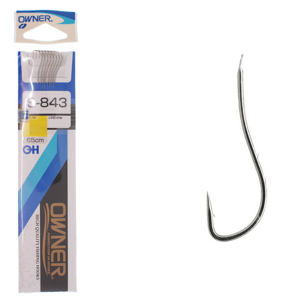 Owner carlige legate cu monofilament 65cm, 0.12mm, S-843 model Ryusen-BH, Nickel, marimea 14 (10buc/plic)