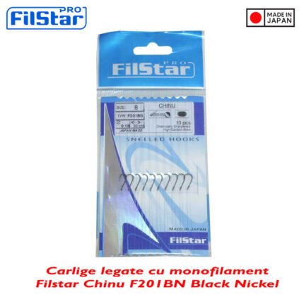 Filstar carlige legate cu monofilament 50cm, 0.16mm, F201BN, model Chinu, Black Nickel, marimea 8 (10buc/plic)